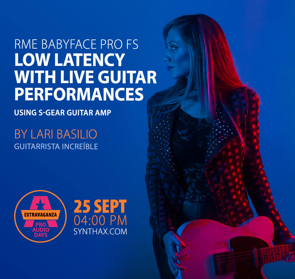Pre-Recorded from Lari’s Studio – this will be a 1 recorded session where Lari takes us through her use of the Babyface Pro as an audio interface for guitar recording and performance. Discussions will include the benefits of the Babyface Pro FS and her own personal experience when she first started using the Babyface. Lari will also demonstrate the S-GEAR amp simulation software and talk about her opinions about the sound of S-GEAR. Throughout her presentation she will play excerpts of her music, which should be impressive and very entertaining.