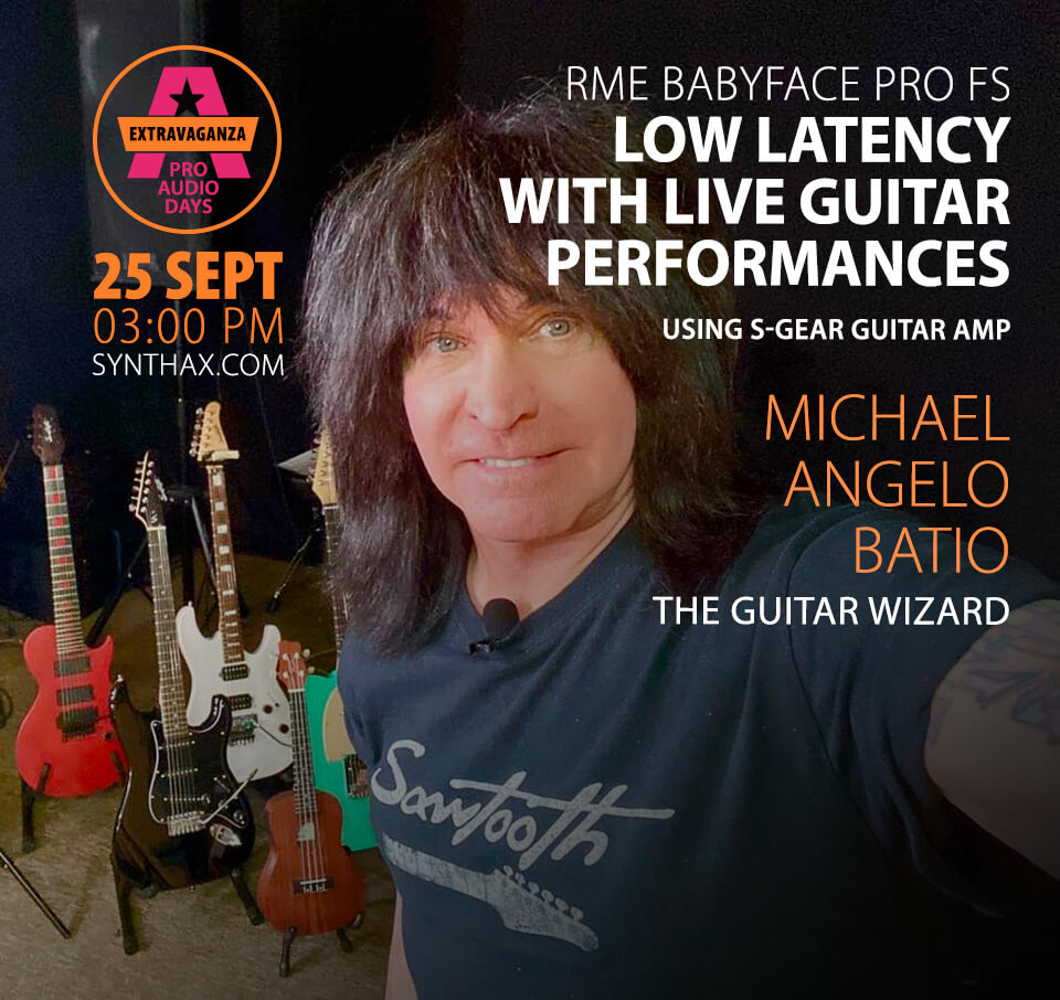 Pre-Recorded from MAB’s Studio – this will be a 1-hr recorded session where MAB takes us through his use of the Babyface Pro as an audio interface for guitar recording and performance. Discussions will include the benefits of the Babyface Pro FS and his own personal experience when he first started using the Babyface. MAB will also demonstrate the SGEAR amp simulation software and talk about his opinions about the sound of SGEAR. Throughout his presentation he will play two performances which will be impressive and very entertaining.